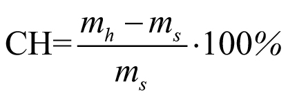 para determinar el CH. Donde mh es la masa húmeda, previa a ser introducida al horno, y ms es la masa seca, luego de 30 minutos a 125 °C.