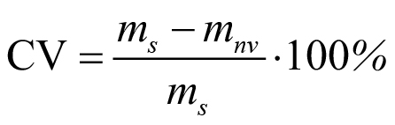 siendo mnv la masa de contenidos no volátiles, es decir, luego de ~600 °C durante 20 minutos.