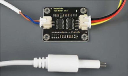 Tensión de alimentación: 3,3 - 5,5 V DC Corriente: 3 – 6 mA Rango de TDS: 0 - 1000ppm Precisión: ± 10% F.S. (a 25 °C) Tensión de salida: 0 - 2.3V |