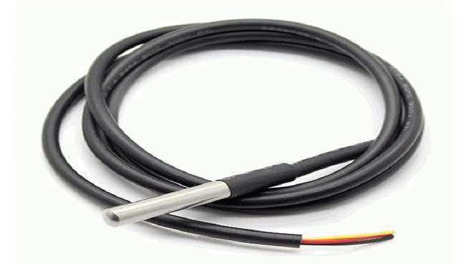Se basa en un termistor de coeficiente negativo (NTC), encapsulado en un paquete resistente al agua y protegido contra interferencias, lo que lo hace adecuado para entornos exigentes. Además, incorpora un convertidor analógico a digital (ADC) y un microcontrolador interno que procesan la señal generada por la variación de resistencia. Este sistema convierte la señal analógica en una lectura digital de temperatura. El sensor transmite esta información mediante el protocolo OneWire (Tabla 1 (E)).