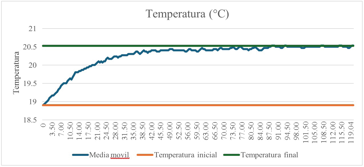 Figura 3 - Evolución de la temperatura en un período de dos horas.