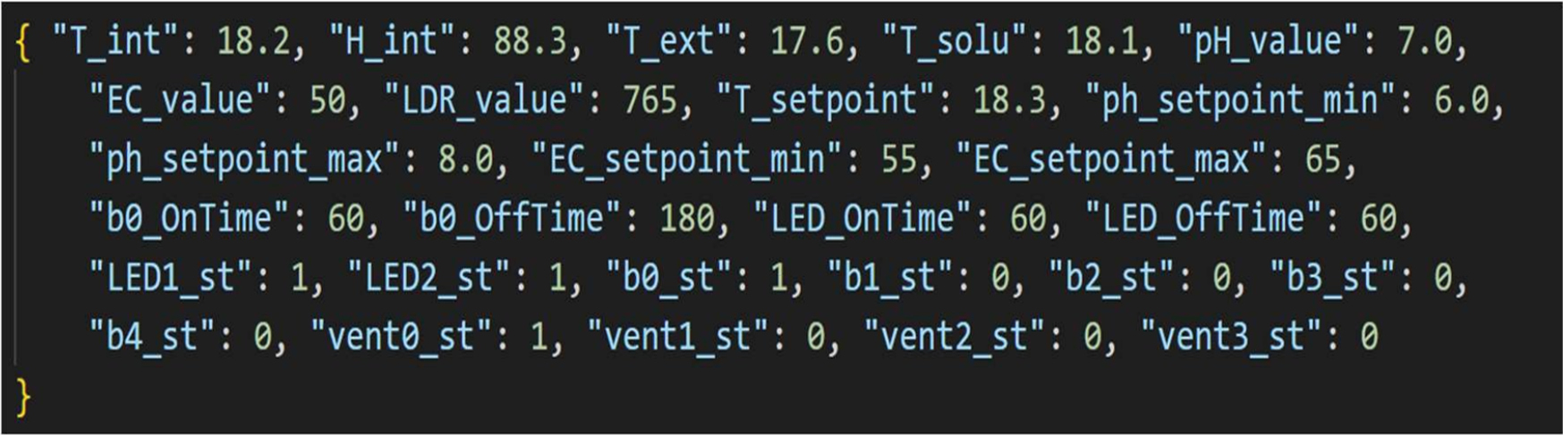 En el contexto de la comunicación entre el Arduino y la Raspberry Pi, el formato JSON resulta una excelente opción para estructurar y transmitir datos de manera eficiente. JSON (JavaScript Object Notation) es un formato de texto ligero para el intercambio de datos. Es fácil de leer y escribir para los humanos y fácil de analizar y generar para las máquinas, lo que lo convierte en un estándar popular para la transmisión de datos entre aplicaciones debido a su simplicidad y flexibilidad. Este formato se basa en pares de clave-valor, donde cada clave está asociada con un valor específico. Las claves son cadenas de texto y deben estar entre comillas dobles. Por ejemplo, el valor de pH medido podría ser representado como: