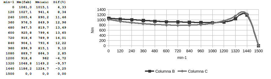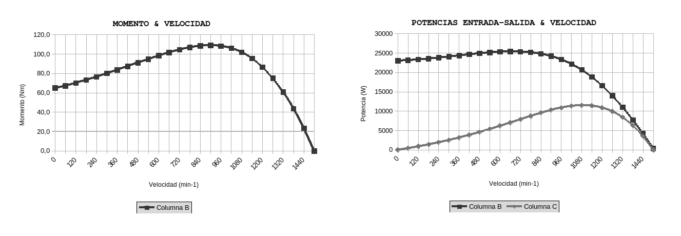 En caso de comparación con curvas del fabricante de otros motores mencionados, los resultados se muestran en las figs 4 y 5.