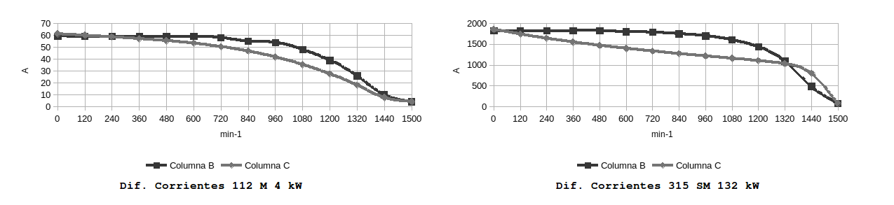 La comparación de corrientes, para 75 kW, puede verse en la Fig. 3.
