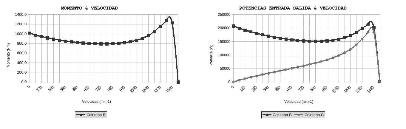 b) Comparación con datos de la curva del fabricante: La comparación de los valores en distintos tramos de la curva de momentos, para 75 kW, arroja los resultados de la Fig. 2.
