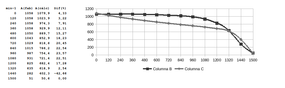 h) Exportación de valores: además de la devolución en pantalla de los datos ingresados y obtenidos, éstos se exportan a una planilla de cálculo estándar, en donde se obtienen las curvas características.